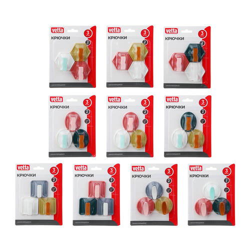 VETTA Крючки самоклеящиеся, круглые, 3шт, 4 дизайна