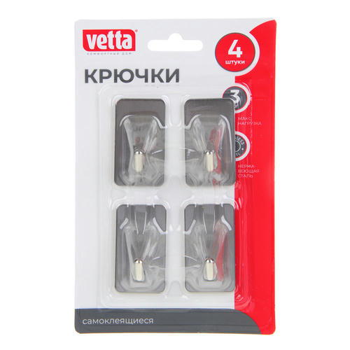 VETTA Крючки самоклеящиеся, 4 шт, нерж. сталь