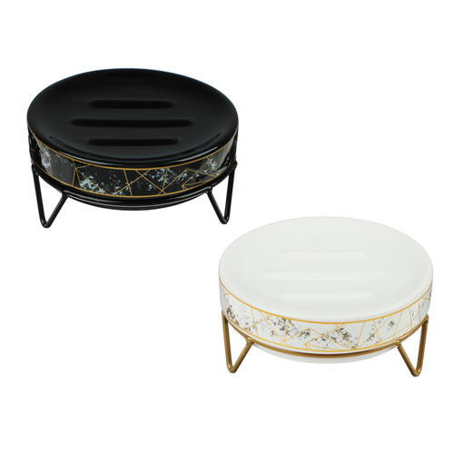 Роскошные аксессуары для ванной комнаты из коллекции “Ла Рош” придутся по душе ценителям стиля и комфорта. Оригинальный дизайн, безупречное качество изготовления и классическое сочетание черный с золотом или белого с золотом, превратят набор в изюминку ванной комнаты. В коллекции представлено всё необходимое: дозатор для жидкого мыла, мыльница и стакан для зубных щеток. Два дизайна на выбор: более строгий черный или шикарный белый. Мыльница из коллекции “Ла Рош” изготовлена из прочной керамики