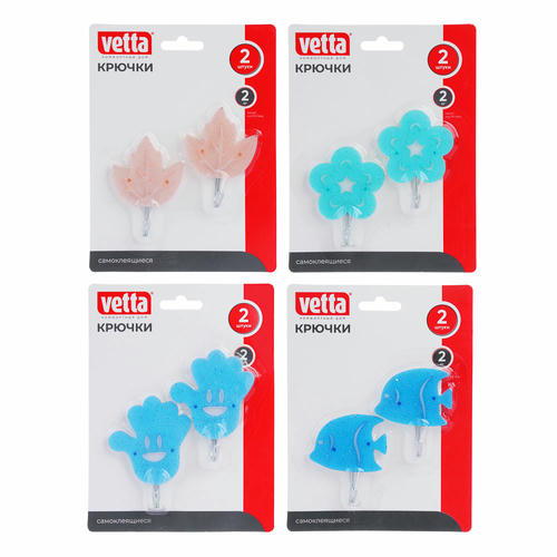 VETTA Набор крючков самоклеящихся, 2шт, акрил, пластик, металл, 4 дизайна
