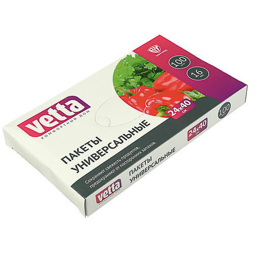 VETTA Пакеты универсальные 100шт, 24×40см, 16мкм, в коробке