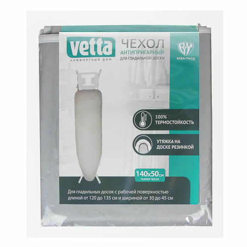 VETTA Чехол для гладильной доски, антипригарный на резинке 140х50см, полиэстер, подкладка поролон