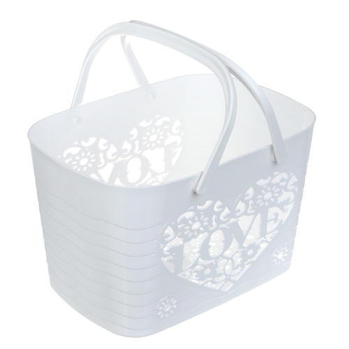 Корзина с ручками для бытовой химии VETTA «Love» поможет организовать пространство в ванной комнате и собрать все моющие средства в одном месте. Декоративное оформление в виде сердца несет также практическую функцию: сквозь отверстия в стенках циркулирует воздух и испаряется влага, поэтому содержимое остается сухим. Пластиковая корзина имеет компактный размер, легкий вес и удобные ручки для переноски. 3 цвета в ассортименте.