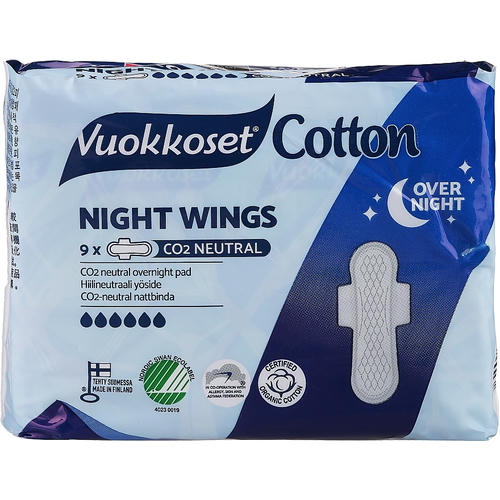 Vuokkoset Cotton Night Wings, Ночные гигиенические прокладки, 9шт